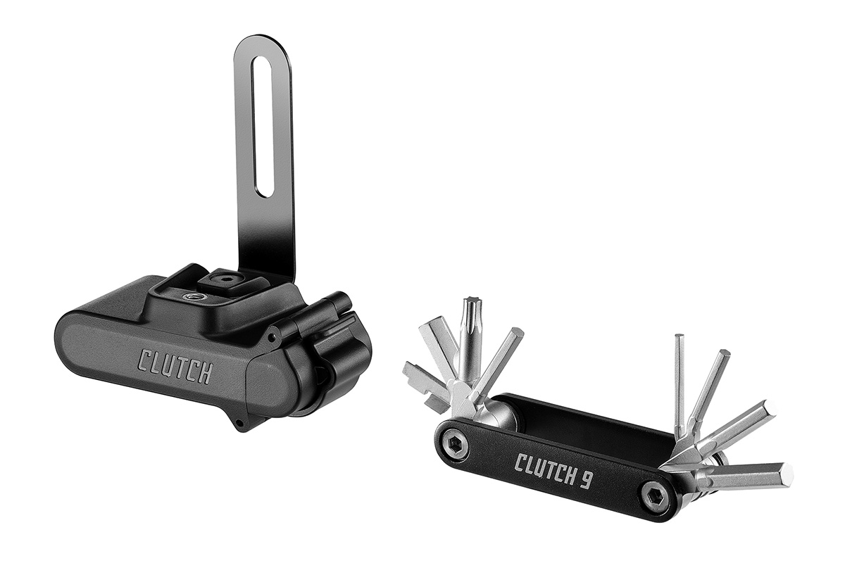 Clutch Box 9 for Airway Sport Sidepullは、ジャイアントの「Airway Sport Sidepull Recycle Bottle Cage」専用に設計されたツールボックスだ。2、2.5、3、4、5、6、8mmの六角レンチ、マイナスドライバー、T25トルクスを備えた9種類の工具を一体化したマルチツールを収納することが可能となっている。ボトルケージに統合することで、フレームバッグやサドルバッグを使わずにツールを携行できる点がスマートだ。