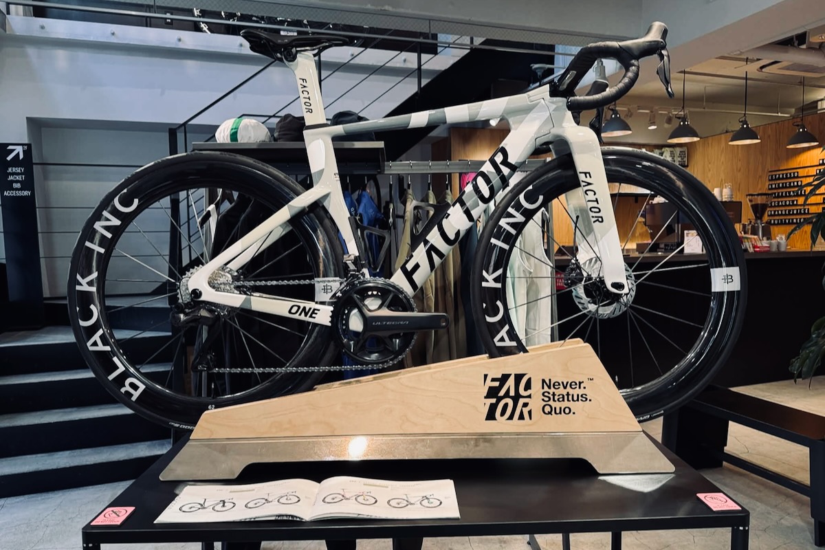 日本時間の昨日、12月11日の18時に世界同時公開され、その先進的なフォルムが話題をさらっているファクターの新型ONEが、Rapha TOKYOにて展示中だ。