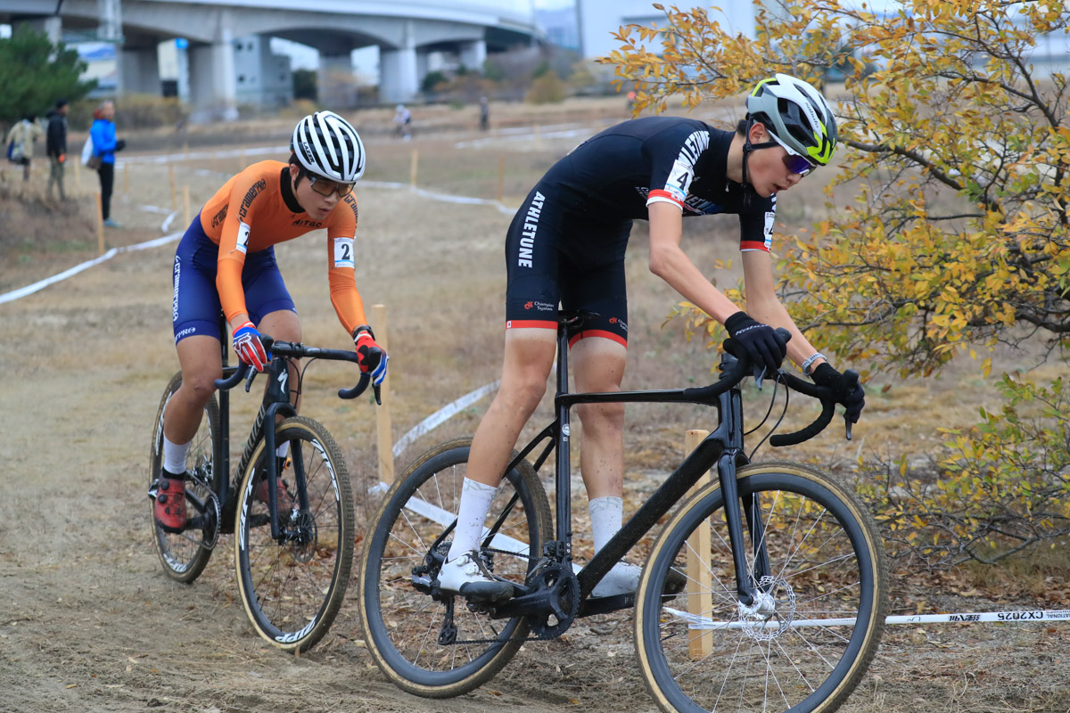 2日目の第1レースとなったジュニアのレースは雨のあがった直後のレースとなった。スタートから(アスリチューン・CORAGGIO KAWANISHI U-19/横浜立野高校)と松村拓弥(群馬工業高等専門学校)が抜け出して2人パックを形成した。
