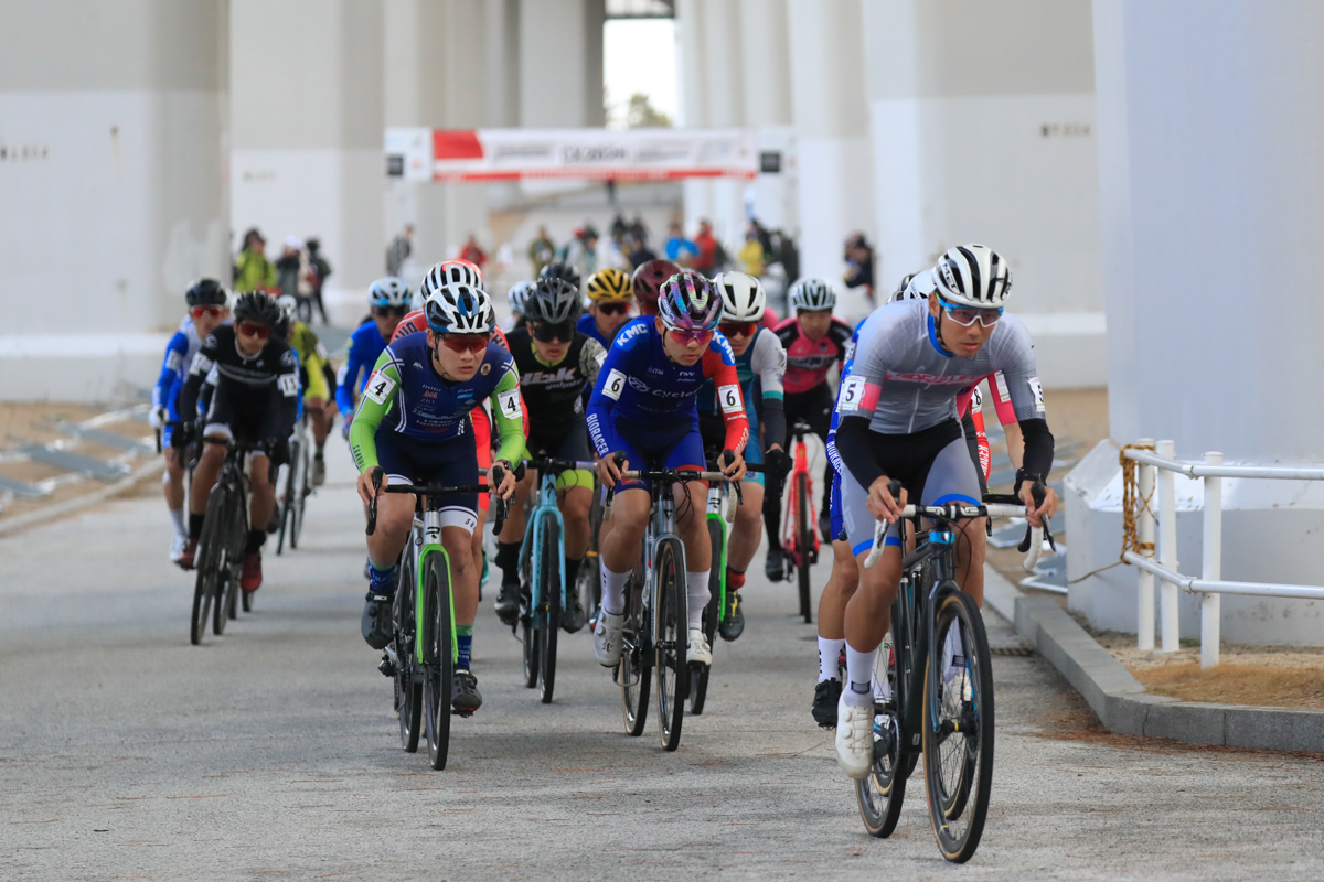 28人のレースのホールショットを取ったのは綾野尋(cycleclub3UP.)。その後の林間コースを経て野嵜然新(drawer THE RACING/桐光学園高等学校)と前年までU23で2連覇中の柚木伸元(日本大学)の2人が抜け出し、展望デッキ下からビーチへと出る。