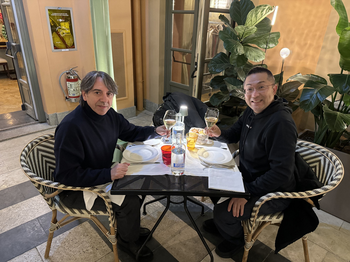 さて、2025年一発目のミーティングは今年もプロロゴです。昨年にサルヴァトーレGM夫妻を京都観光に連れて行った御礼として、ミラノ到着の夜に豪華なレストランに連れて行ってもらいました。しかし、そういったセレブ御用達の高級レストランは苦手です。地元民でごった返しているゴチャゴチャした感じのローカルレストランの方が好みなんです。豪華なレストランは無作法な私は緊張するので、“いつものローカルレストランが良いんです…”とお伝えしましたが、サルヴァトーレGMは即却下。いつも行かないような豪華なレストランに連れて行ってくれた理由の一端はどうも私にお願いがあったようです。