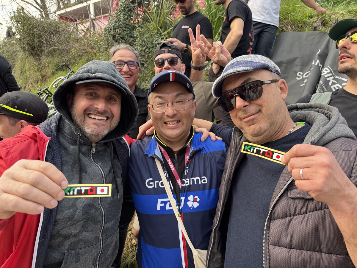 ストラーデ・ビアンケのゴール付近でイタリア人ファンと記念撮影 photo : Kitto Kitamura