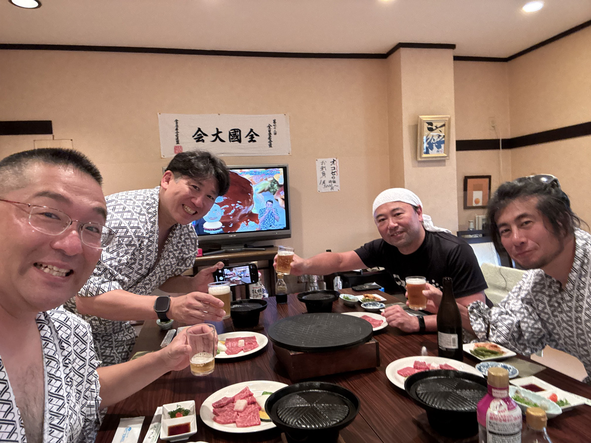 ドイツから一時帰国した中村孝司さん・栁澤楓さんと焼肉で再会、ヨーロッパのサイクリング情報交換 photo : Kitto Kitamura