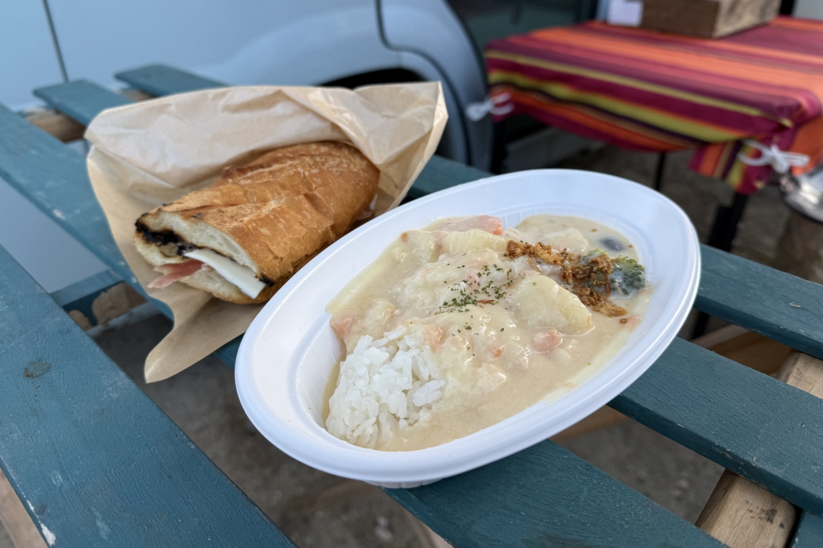 エスキーナのサーモンクリームシチューとチーズのバゲットサンド photo:Michinari TAKAGI