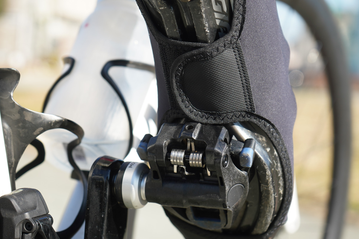 生地が伸縮性に優れていることで、冬用アイテムにありがちなゴワゴワ感はなく、自然なフィット感でペダリングもストレスフリーとなることも魅力だ。足裏には面ファスナー、ふくらはぎ部分はジッパー仕様とすることで、着脱のしやすさにも配慮が行き届いている。つま先部分にはプロテクター、踵部分にはリフレクターが備えられている。価格は13,200円(税込)。
