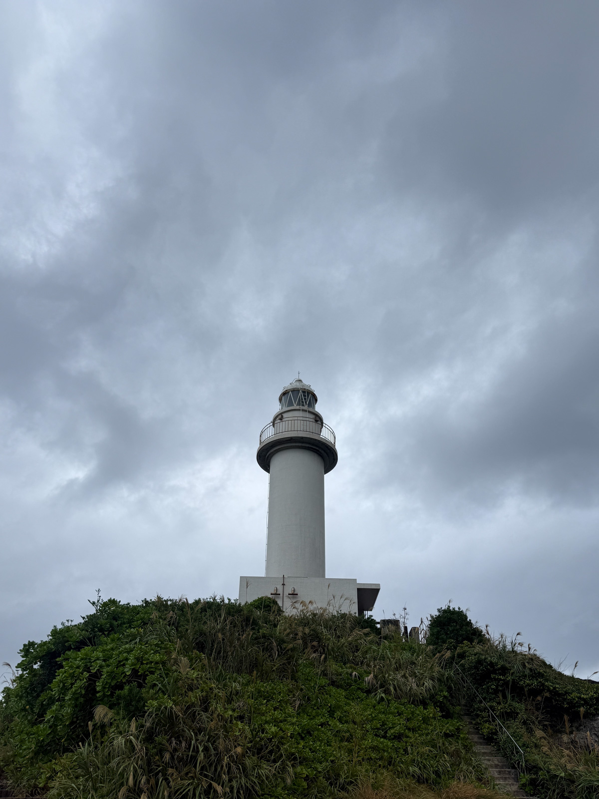 Sさんと談笑しながら登っていくと、あっという間に真っ白な御神崎灯台の姿が見えてきます。