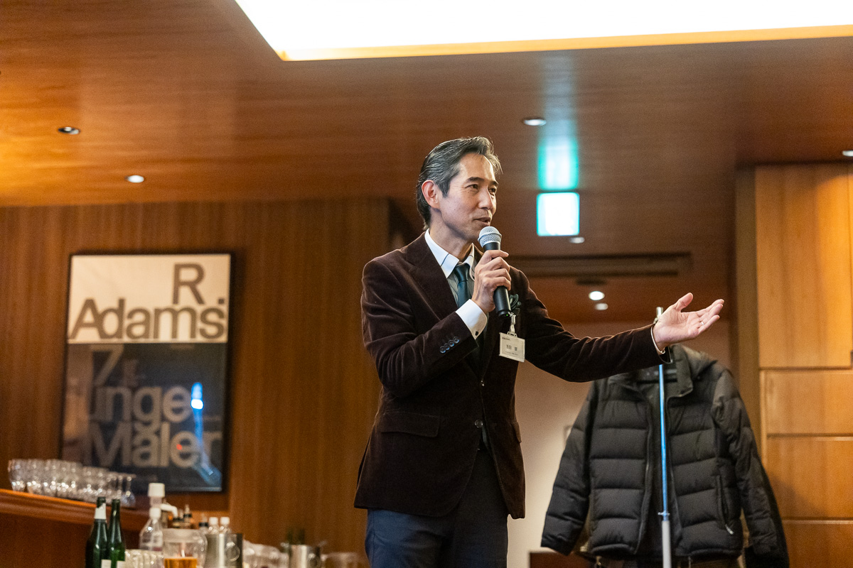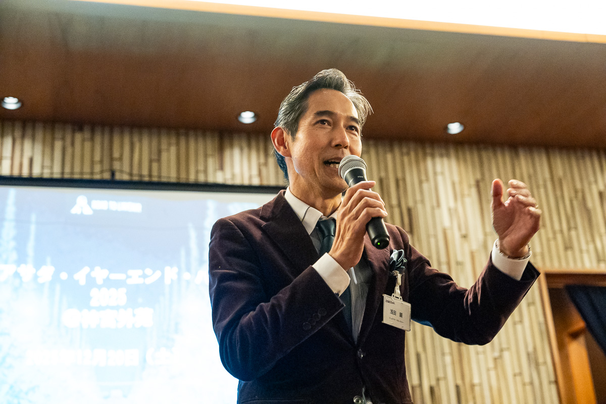 柔らかな表情で挨拶を行う浅田顕代表 photo: Yuichiro Hosoda