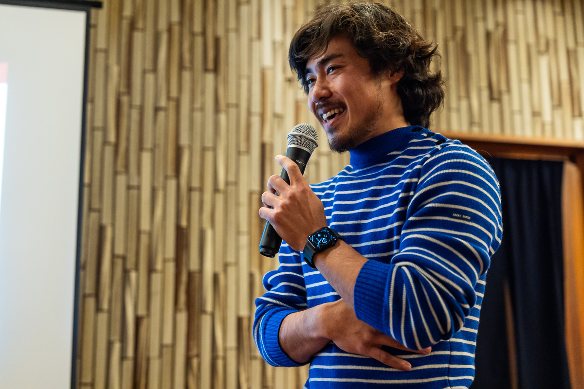 自身の現在地とRTAとの関係性を話す蠣崎優仁 photo: Yuichiro Hosoda