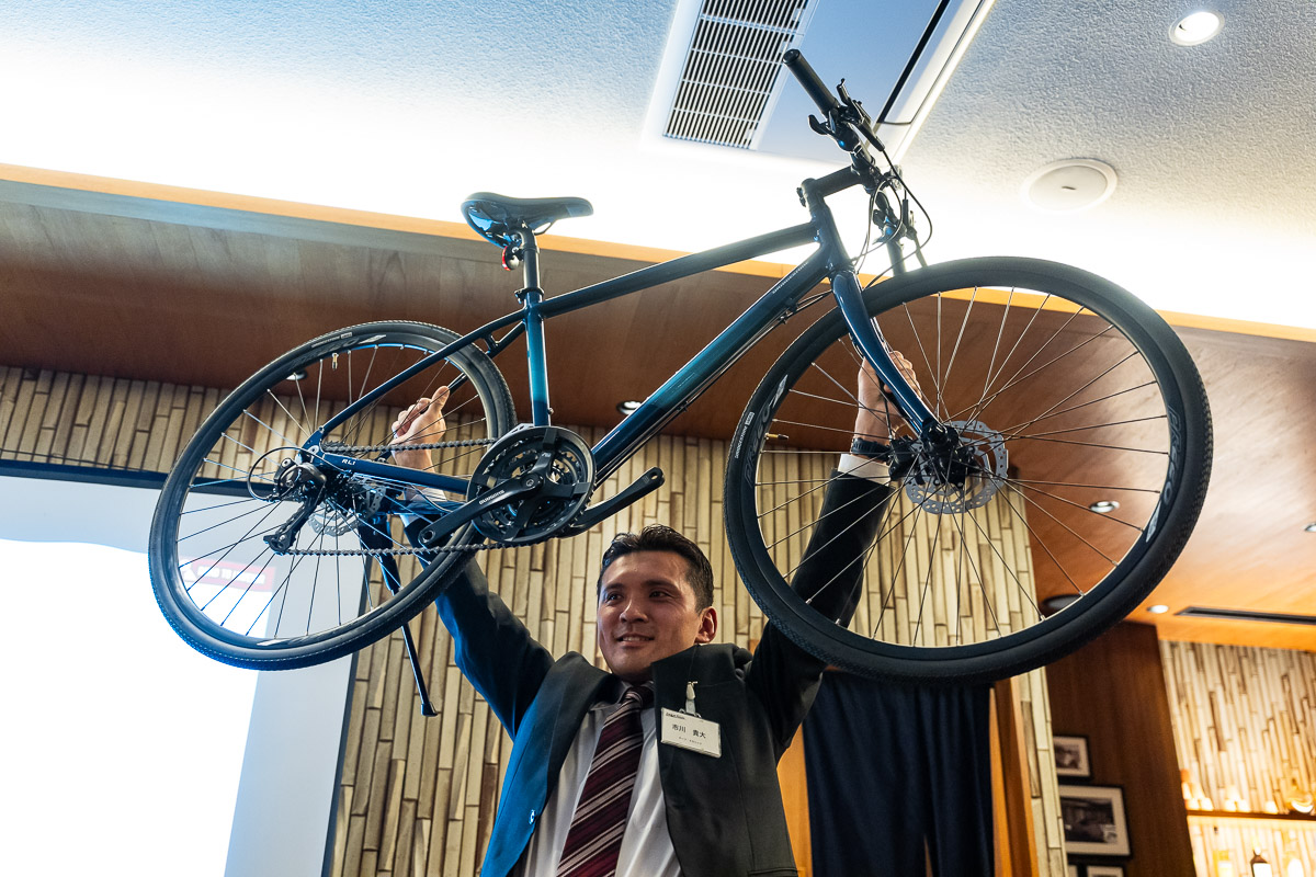 EQADSやプロジェクトの活動拠点でもある埼玉県東松山市のシクロパビリオンでも、訪れるサイクリスト達にその腕前と人柄が評価されており、浅田氏から市川へ花束が贈られると、会場は惜別の拍手に包まれた。