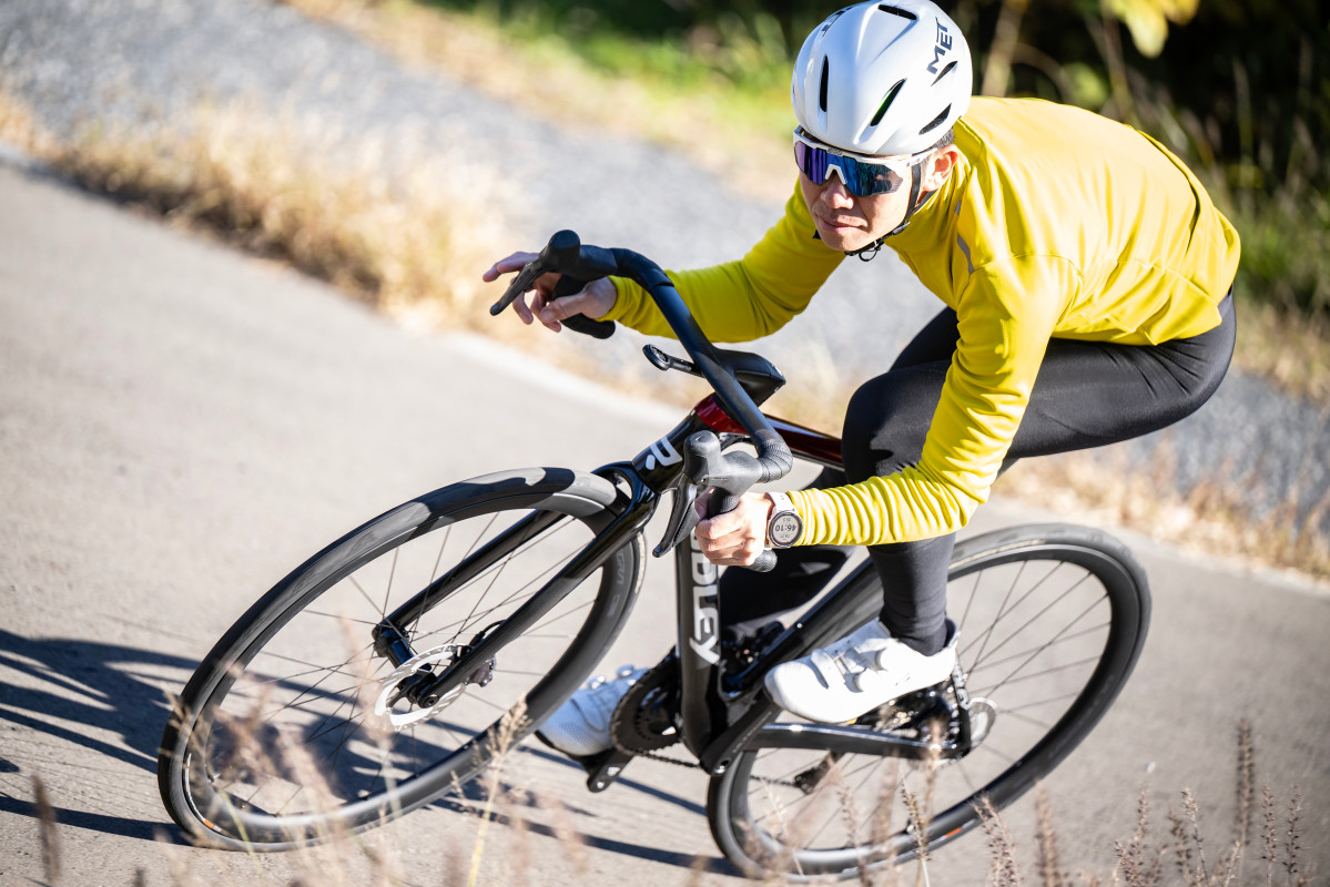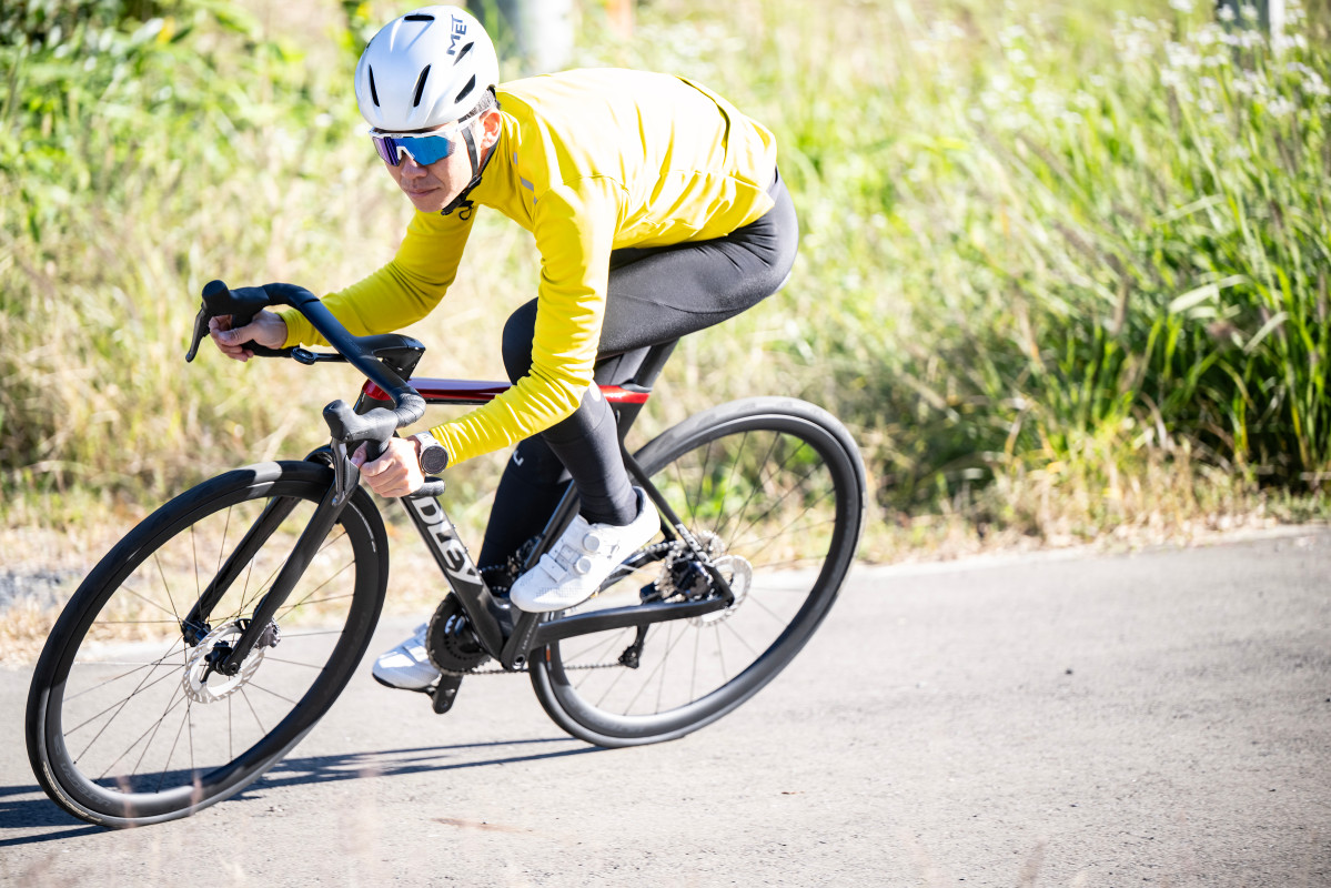 ただ、決して踏み切れないようなレベルではなく、軽く回していくもよし、ギアを掛けてダンシングで進んでいくのもスムーズです。特にダンシングでは、車体がコンパクトにまとまっているような感覚で、自分の重心の中でバイクが収まっているような扱いやすさを感じました。