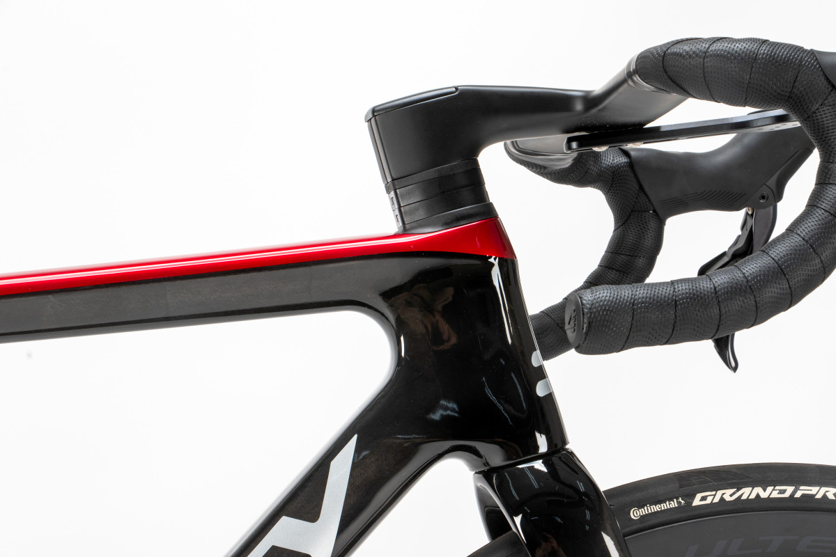 わかりやすく表現すれば、Heliumよりもエアロで、Noah Fastよりも軽量なバイク。そんな夢のような一台を実現するために、リドレーはジオメトリーからチューブ形状に至るまで、全てをフルスクラッチで設計している。フォークブレードは翼断面、ダウンチューブはカムテールというように様々なプロファイルを適材適所に配置し、一見空力に影響の少なそうなトップチューブも扁平させることで横風の影響を抑える徹底ぶり。ケーブルを完全に内装するF-Stearも採用されている。