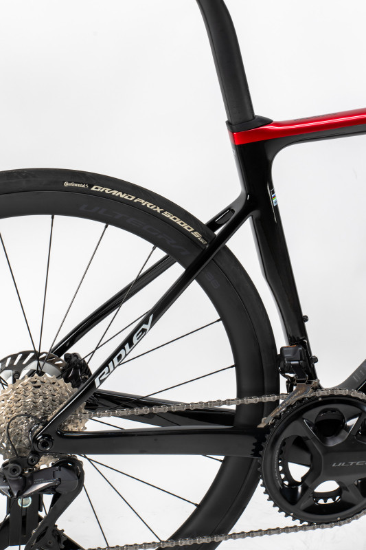 推奨されるタイヤクリアランスは現在のレースシーンでのトレンドど真ん中の28mm。一方で、最大34mmまで装着できる余裕が持たせられているのは、全車石畳で走行テストを行うというアイデンティティを持つリドレーらしさ。荒れた路面でも高い快適性とトラクション、そしてコントロールを発揮できるワイドタイヤを想定しているのは一台でなんでもこなしたいホビーライダーにも嬉しいスペックだ。