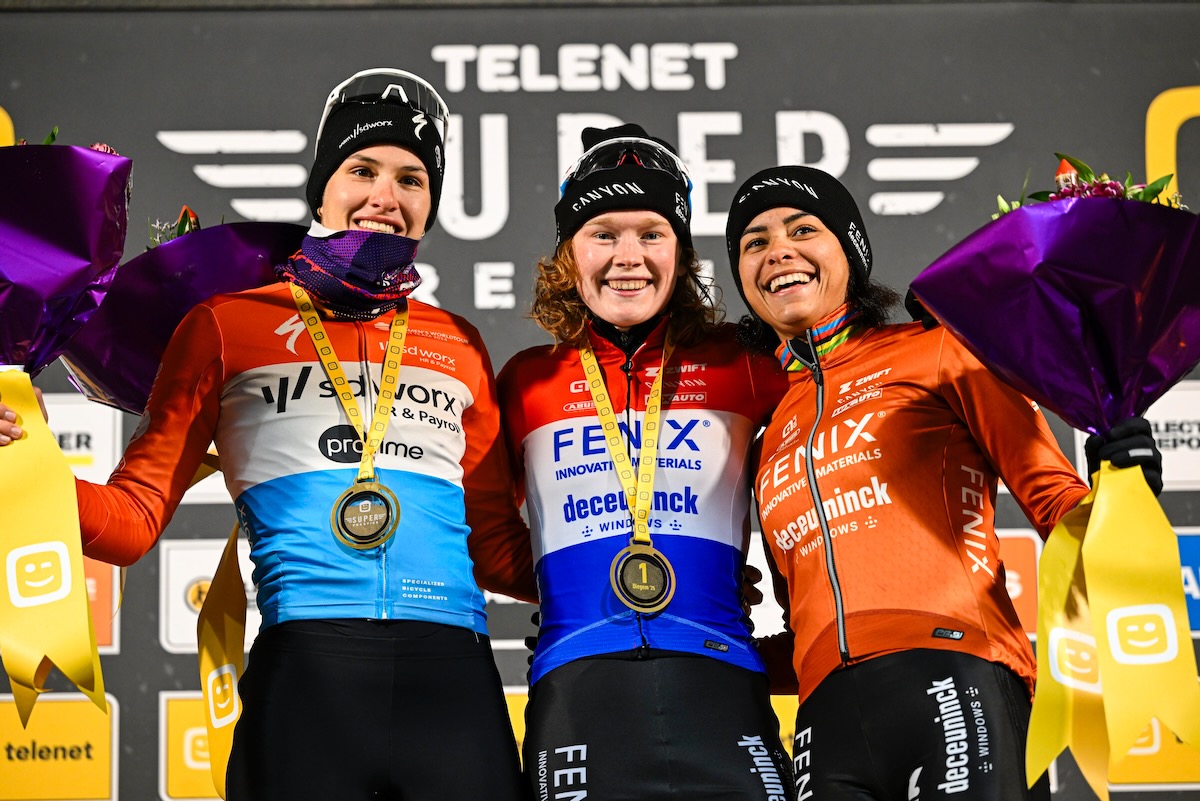 テレネット・スーパープレスティージュ2025-2026第6戦 女子エリート表彰台 photo:CorVos