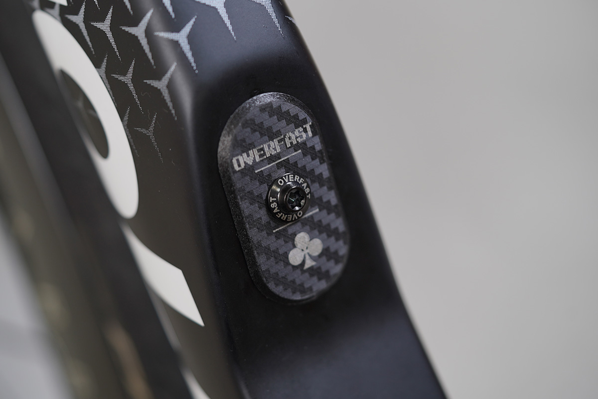 オーバーファストのプロダクトは、カバー兼バッテリーホルダーとなっている。織りカーボンがオーバーファストらしさが演出され、かつコルナゴのクローバーマークもあしらわれており、カスタムパーツとして選びやすくなっている。価格は9,900円(税込)。