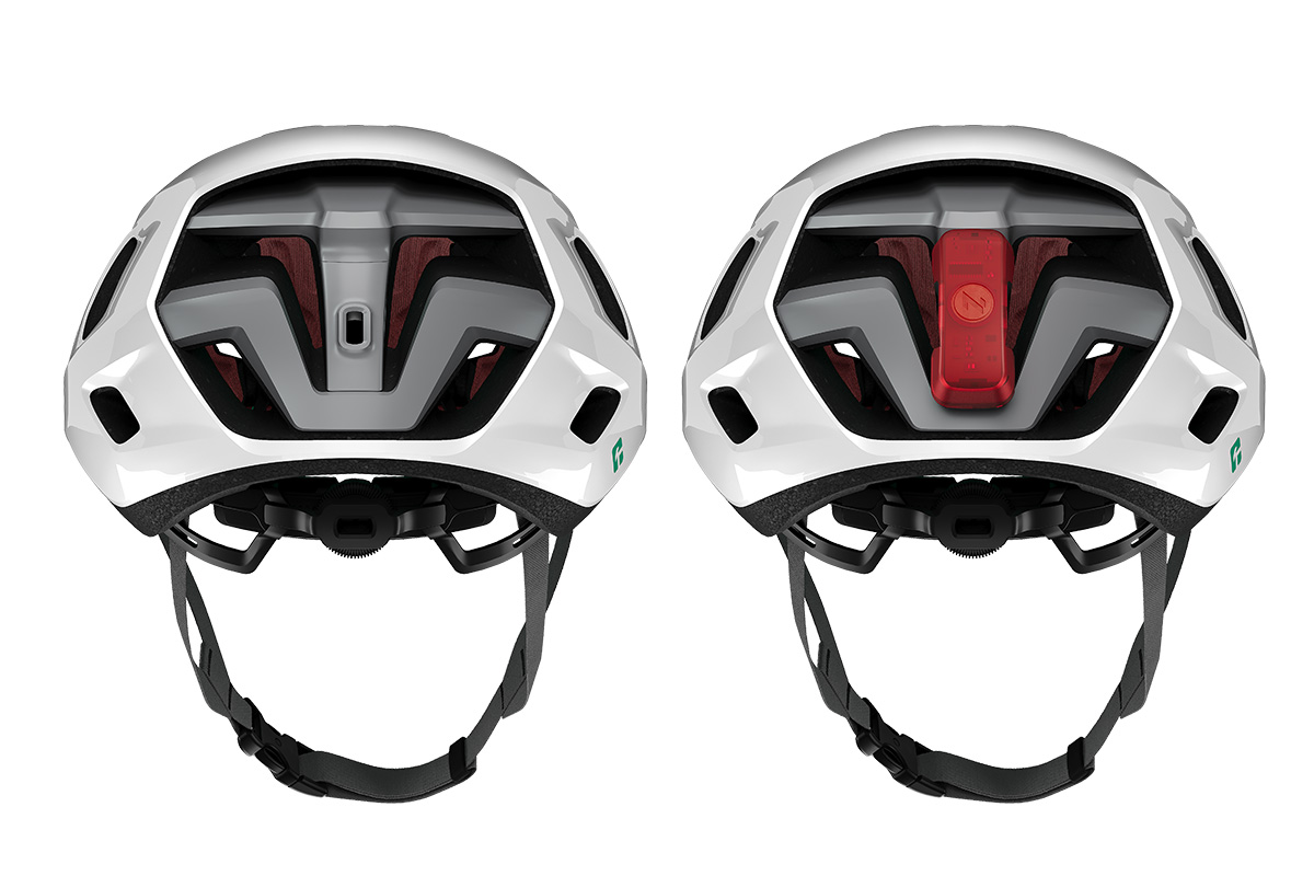 ヘルメット後部には別売のLEDライトを装備することもできる (c)シマノ
