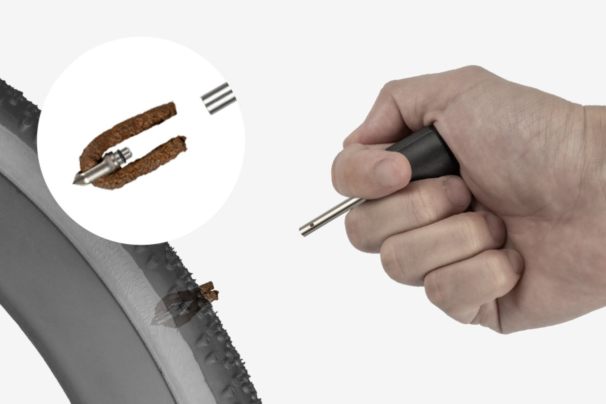 同時に発表されたのがチューブレスタイヤ用の携帯リペアキットとなるTUBICARTRIDGE T16。シーラントでは塞ぎきれないタイヤの穴にプラグを挿入することでエアリークを防ぐパンク修理キットだ。