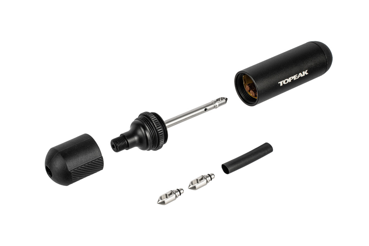 更にユニークなのがCO2インフレーターを装着可能な点。CO2ボンベとインフレーターを組み合わせることで、タイヤ内に直接ガスを注入できるようになっている。バルブを介するよりもダイレクトに空気を充填できるため、ビードが落ちている場合などにも上げやすい効果も期待できそうだ。