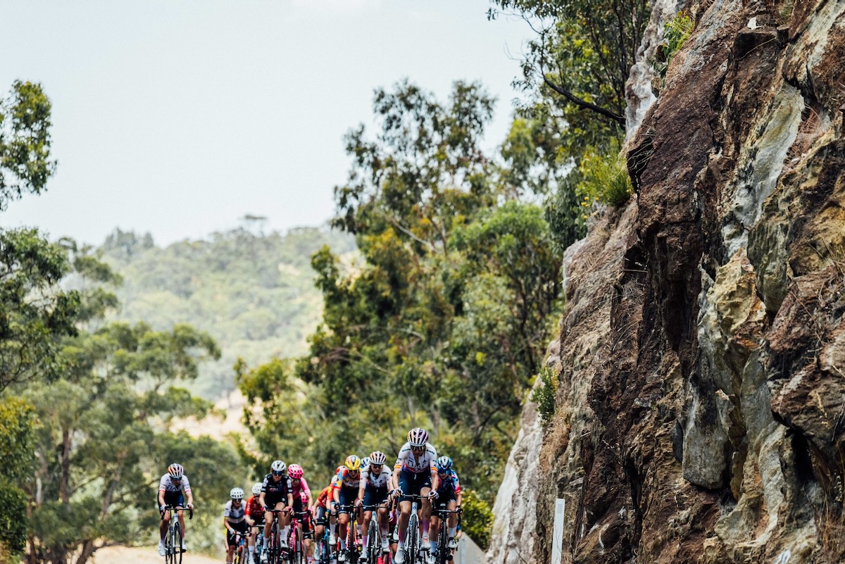 オーストラリア王者マッケンジー・クープランド(リブ・アルウラー・ジェイコ)らのプロトンは逃げとのタイムをコントロールする photo:CorVos