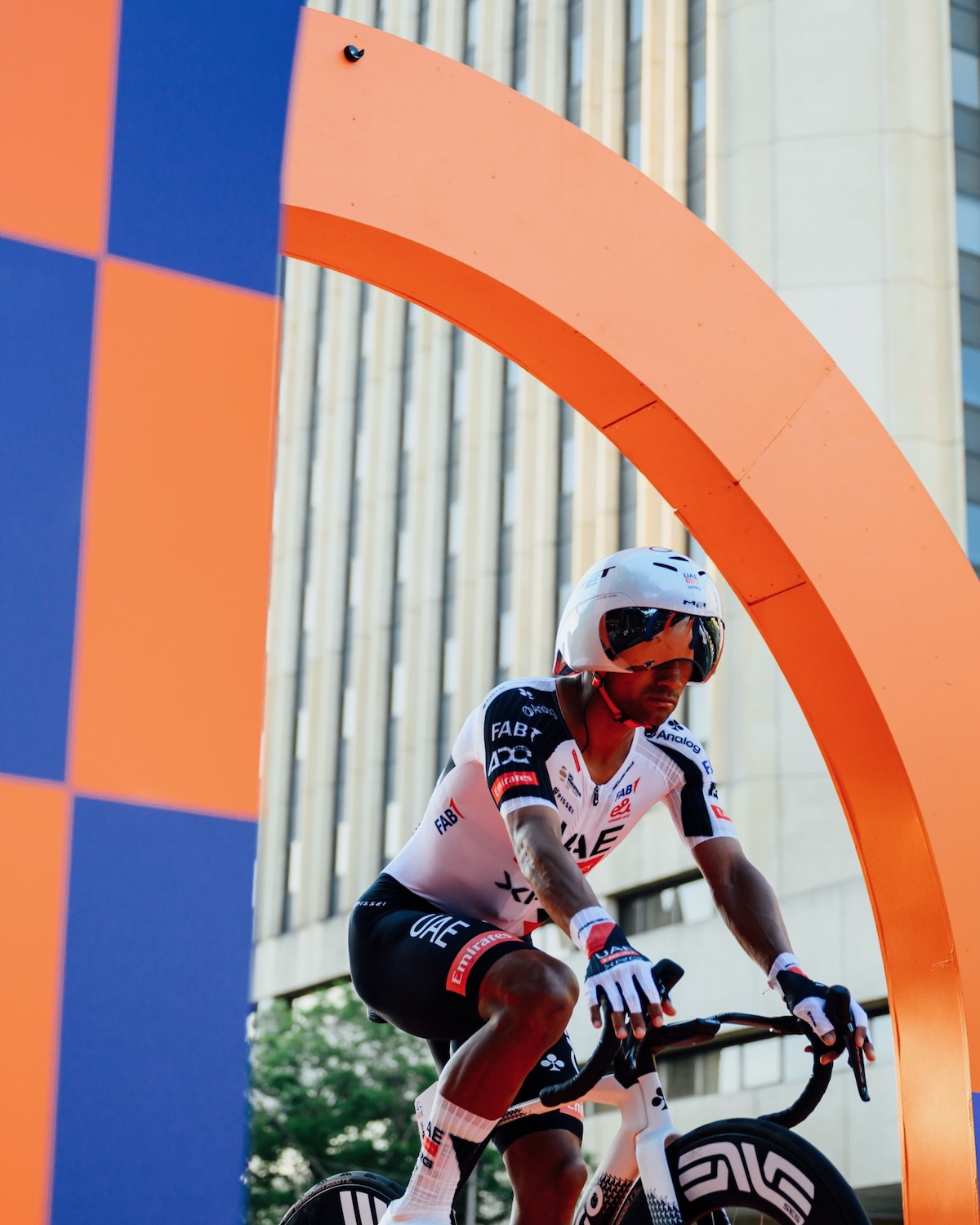 ミヒャエル・ゴグル(オーストリア、アルペシン・プレミアテック)が先陣を切り、1分間隔で順に走り出した戦いを制したのは、イギリスのロード王者であるサムエル・ワトソン(イネオス・グレナディアーズ)だった。昨年の黒と赤から、オレンジと白にデザインを変えたジャージをまとい、ダンシングを織り交ぜながらフィニッシュに飛び込む。4分16秒9というタイムは、その後に走り出した選手たちに破られることはなかった。