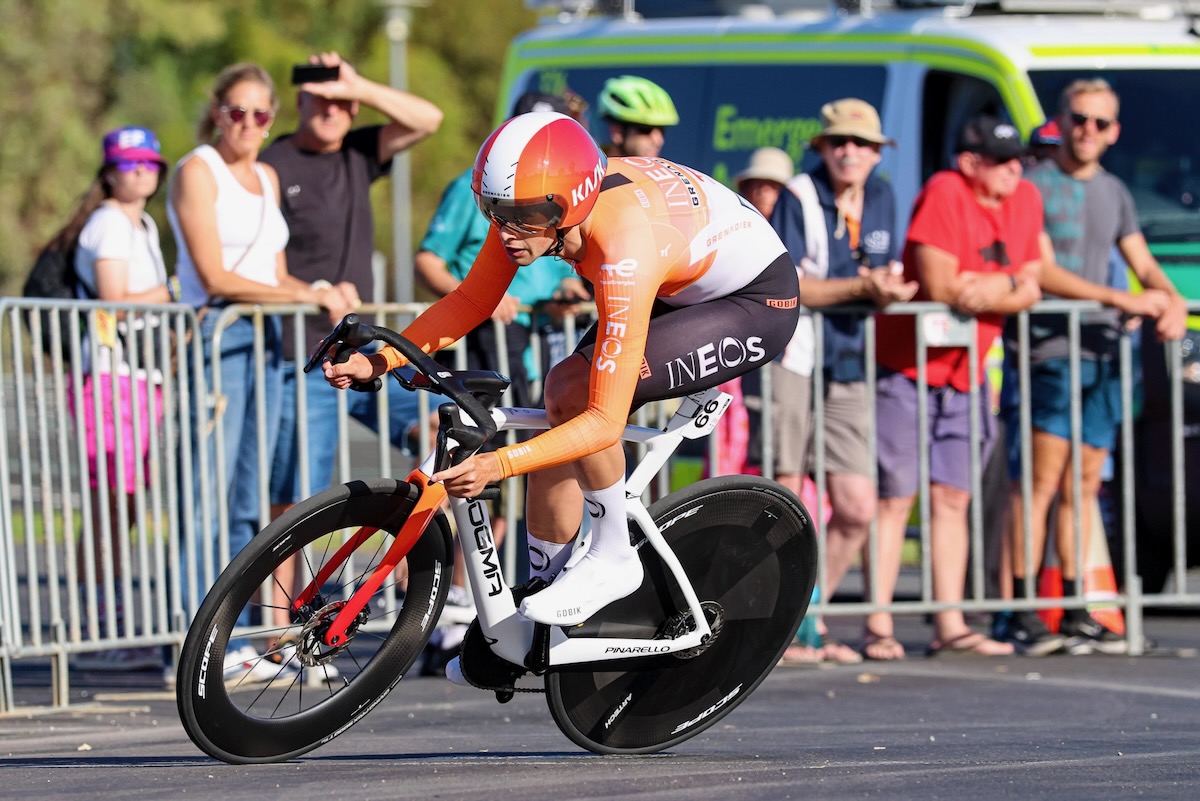 区間2位に入ったのは、同じイギリス出身のイーサン・ヴァーノン(NSNサイクリングチーム)。ワトソンのタイムに僅か0.59秒という僅差に迫り、ローレンス・ピシー(ニュージーランド、レッドブル・ボーラ・ハンスグローエ)は2秒遅れの区間3位。地元オーストラリア出身選手の最高位は、4秒遅れで4位のジェイ・ヴァイン(UAEチームエミレーツXRG)だった。