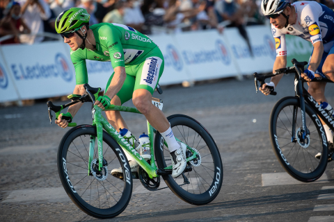 終盤の3級山岳を越えると、ポイント加算の目的を終えたウーリエンスタッドが下がり、最後まで抗い続けたパレニもプロトンに吸収された。有力スプリンターたちが登りで遅れていくなか、第1ステージと同様、トルド・グドメスタ(ノルウェー、デカトロンCMA CGM)の先導で集団は最終ストレートへ。その背後からイネオス・グレナディアーズの隊列が一気に番手を上げた。