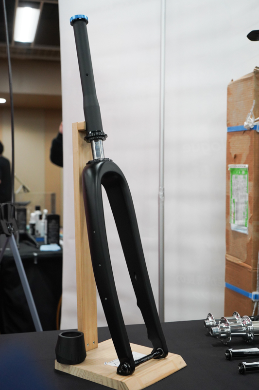 今年のブースでは、いわゆる"ヘッドショック"のカーボンフォーク試作品も姿を見せた。サスペンションが欲しくなるようなグラベルライドで活躍してくれるプロダクトの開発が進んでおり、引き続き東京サンエスの新製品から目が離せない。