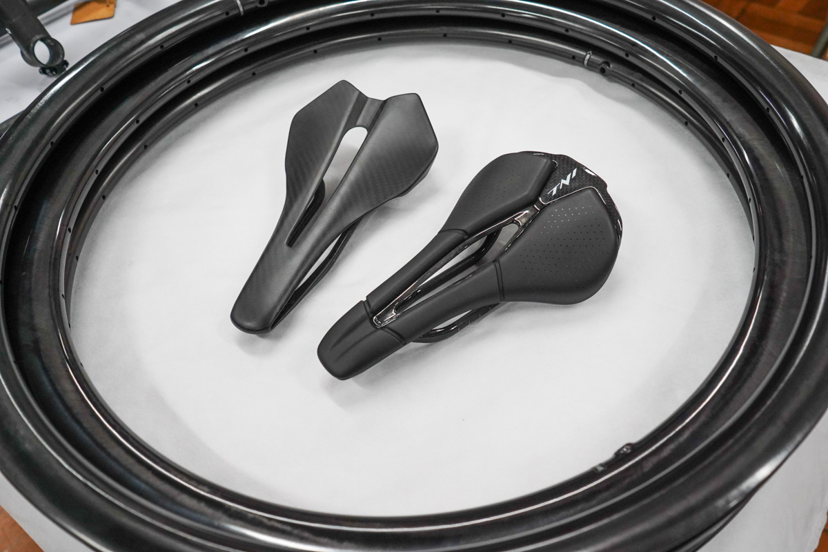 TNIのサドルやリムなど、性能と価格のバランスを整えたプロダクトも並べられた