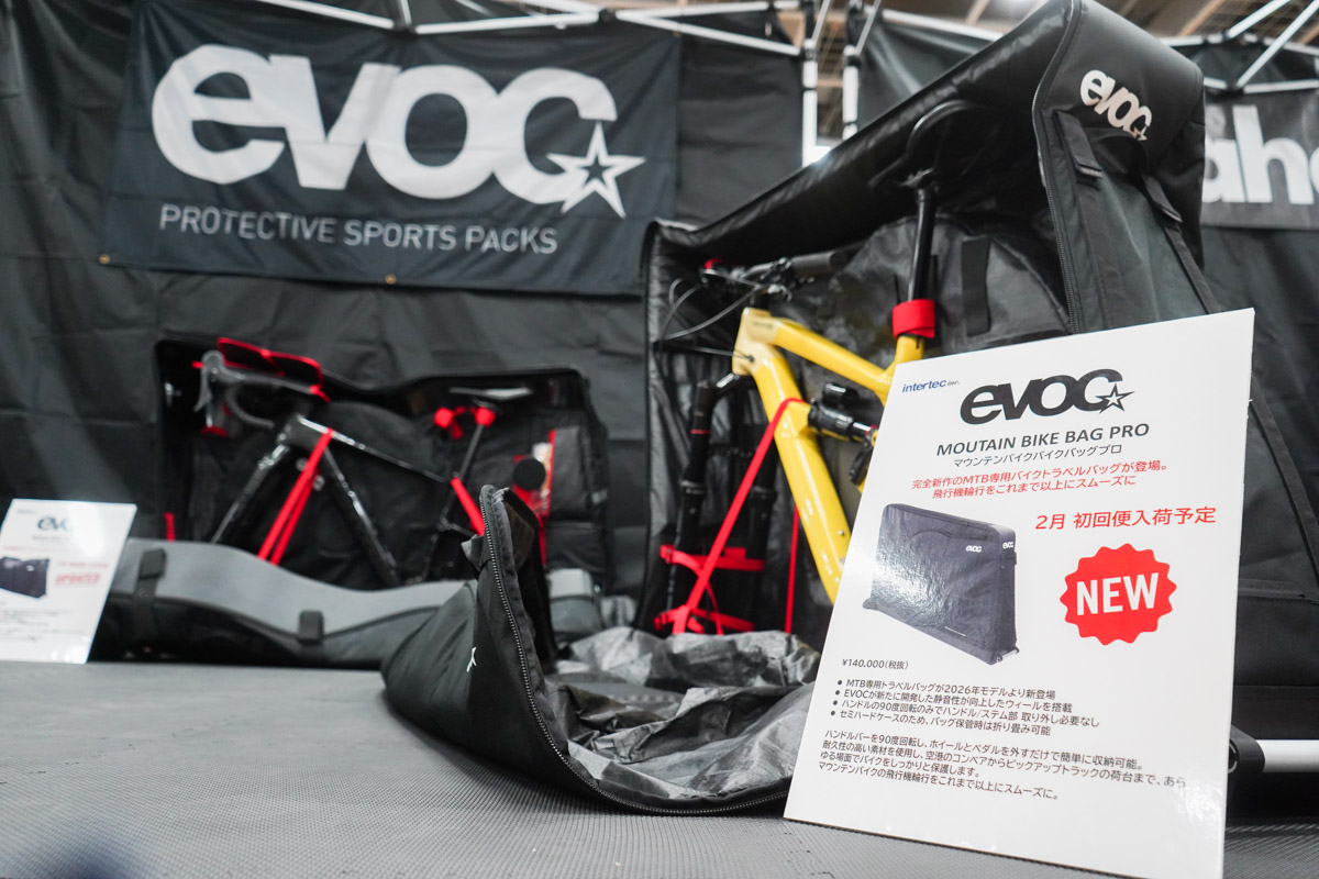 イーボックのブースにはBIKE TRAVEL BAGシリーズが揃った。底面素材変更によって軽量化を果たしたROAD BIKE BAG PROとBIKE BAG PRO、そしてハンドルを外せないマウンテンバイクに対応するMOUNTAIN BIKE BAG PROが並ぶ。ツール・ド・おきなわやニセコクラシックなど飛行機遠征で活躍するバッグで、グランフォンド世界戦などに参戦する方は確認しておきたい。