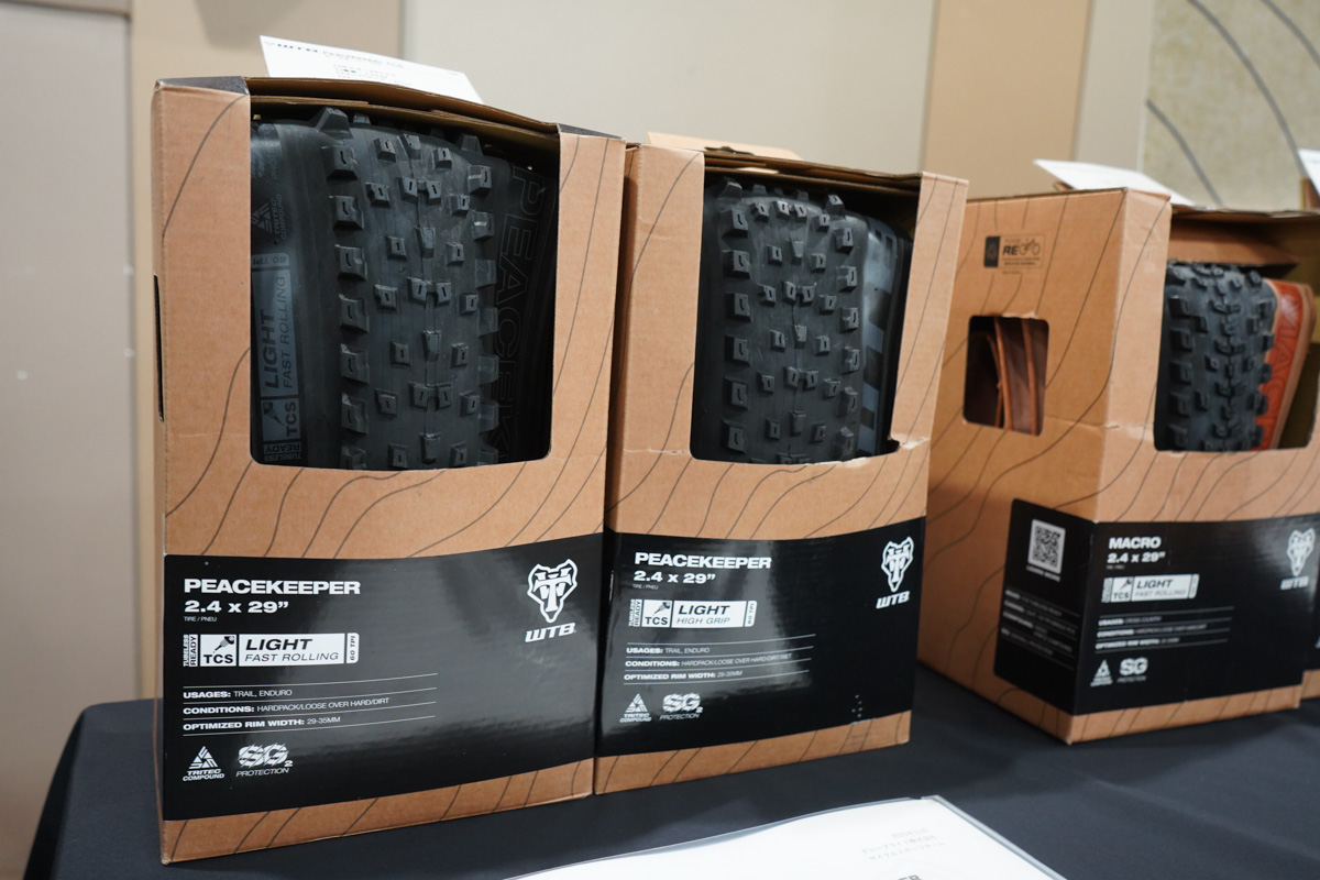 グローブライドが取り扱うWTBからも新製品が登場した。新しいMTBタイヤのPEACEKEEPERは、小さなノブで転がりの軽さを追求しつつ、サイド部分をやや大きめに作ることでコーナリンググリップを高めたモデルだ。クロスカントリーとトレイルライドの中間に位置し、いわゆるバックカントリー系バイクとの組み合わせに適している。
