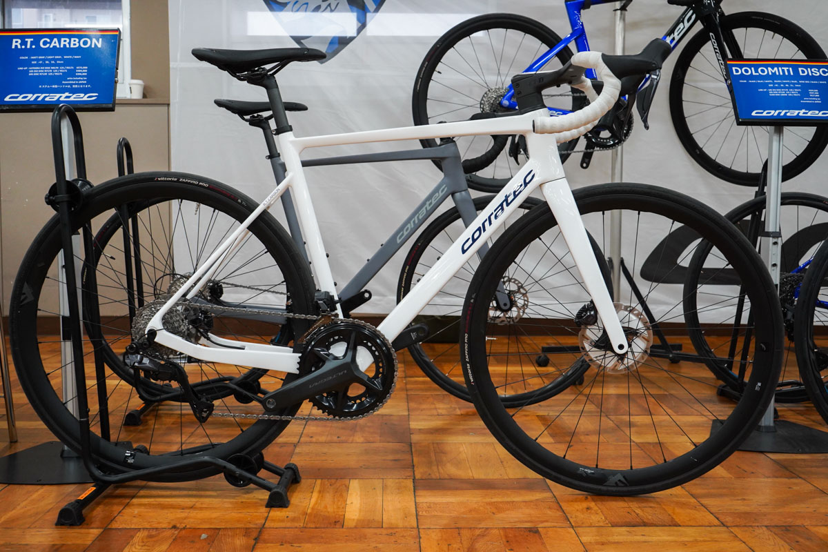 グローブライドのブースでは、コラテックの新型ロードバイク"R.T. Carbon"が実車展示された。日本人の体型や走行フィールドに合わせたグローブライドオリジナル企画で、機械式105完成車で396,000円(税込)という価格設定だ。フレーム造形は非常にシンプルなオールラウンドタイプで、あらゆるフィールドにマッチする。従来モデルより50g軽量化も果たしており、ミドルグレードバイクを探している方に勧められる選択肢となるはずだ。