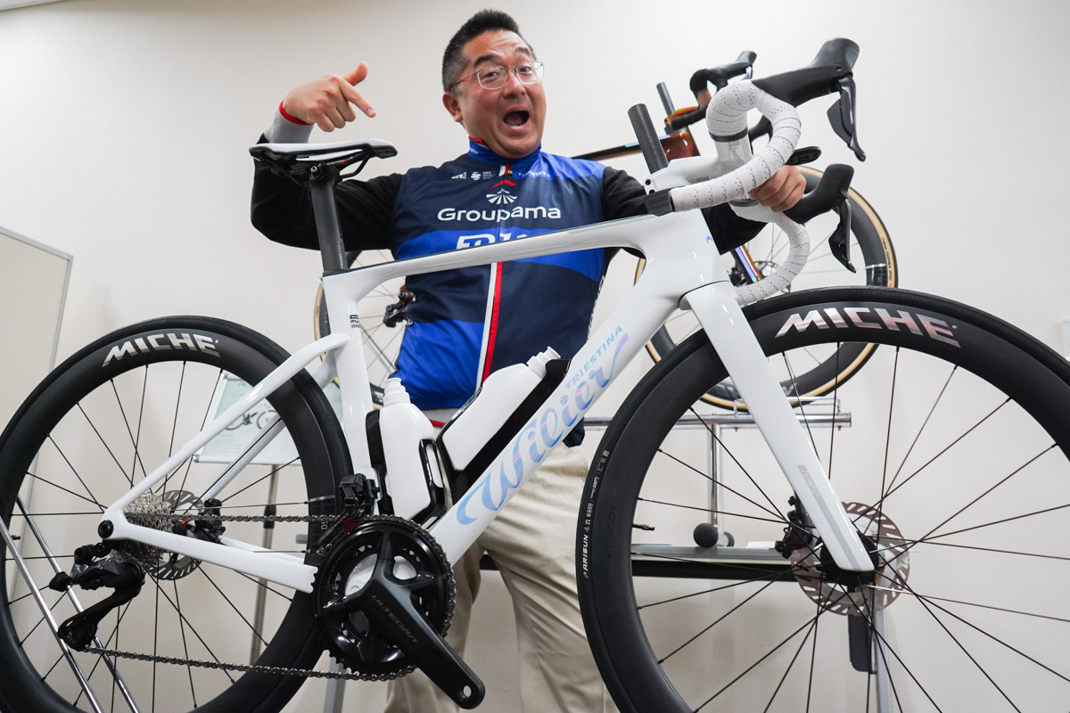 今年からの完成車合同展示会には、ウィリエールやオルベア、コーダーブルームなどが出展した。ウィリエールは昨年11月に発表された新型エアロロードのFILANTE SLR ID2をメインに据えている。すでに試乗車としてショップ試乗会で回っているものの、実車を広くお披露目するのは今回が初めてだ。