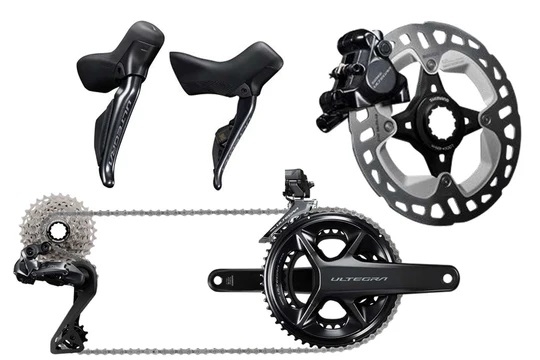 ・コンポ一式の金額は、STI、ブレーキキャリパー、クランク、前後ディレーラー、カセットスプロケット、チェーン、ディスクローター、バッテリー、コード類、充電器、グロメットなどを含んだものです。