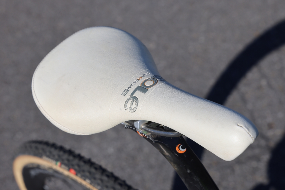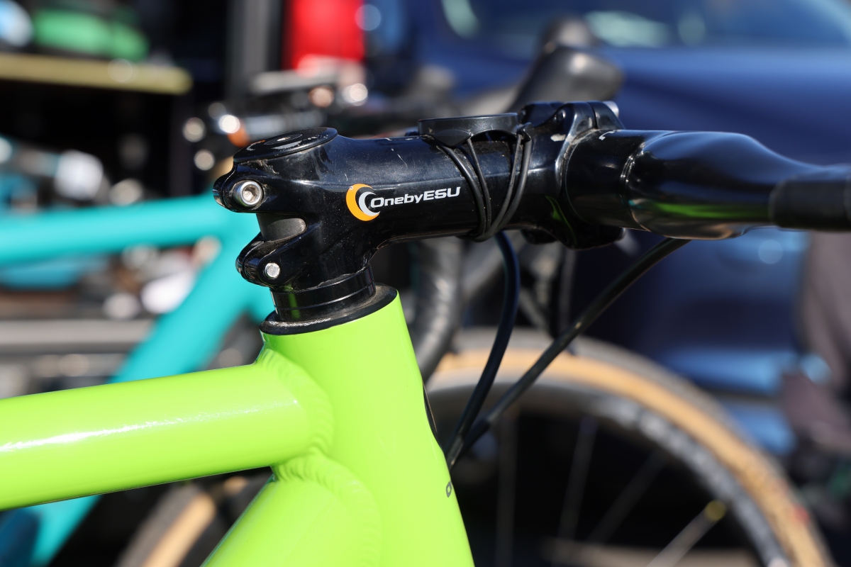 フレーム以外のパーツはワンバイエスで統一されている。コックピット周りはハンドルがジェイカーボン マホラの400mmで、ステムが77ステムの組み合わせ。シートポストはカーボンアキレスシートポストにナロウサーティーソウルサドルが取り付けられていた。