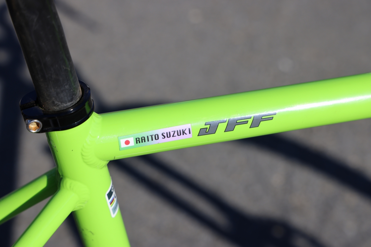 鈴木はカラーリングの異なる2台のJFF #807zを使用する。メインバイクは色鮮やかなグリーン。「サンエスのフレームはみんなオーダーカラーでパントーンから選択できます。志木市にある『KURU』のイメージカラーのグリーンにしています」。