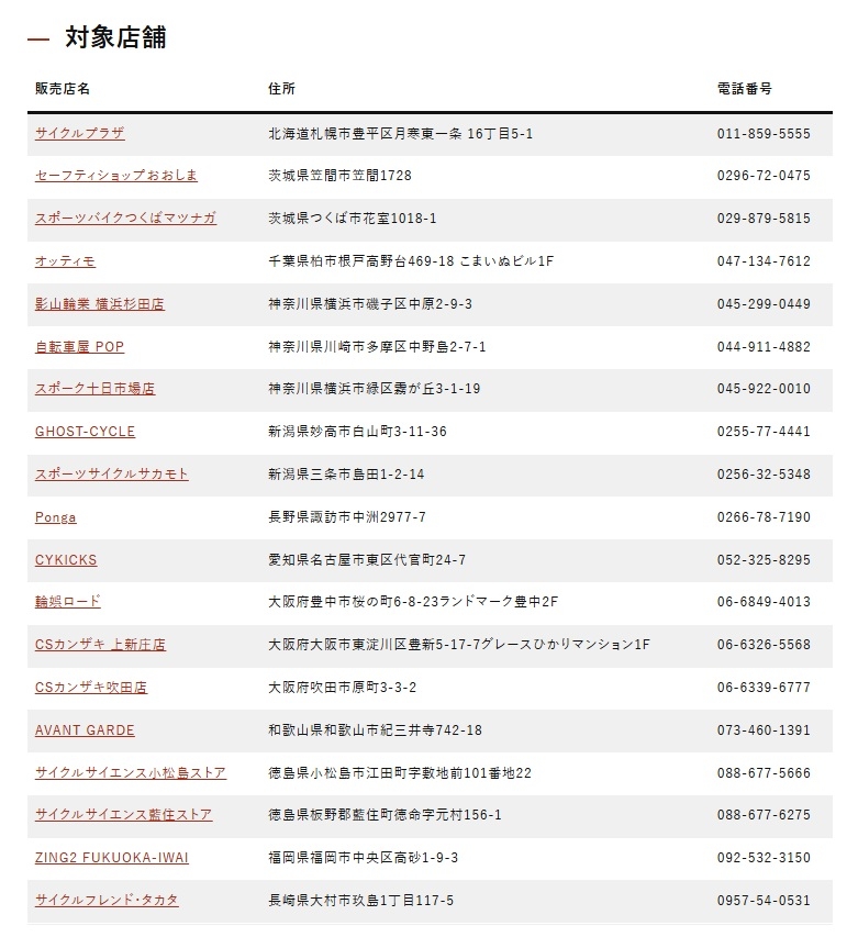 キャンペーン対象店舗 (c)カワシマサイクルサプライ
