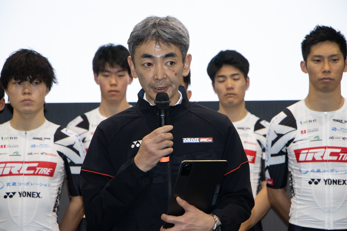 チームユーラシアiRCタイヤが東京で2026年の体制発表会を開催。若手6人が新加入した今季のチーム体制とともに活動内容と展望を発表。今季もさいたま、佐渡、春日井の3つの地域を拠点に活動。若手を育成しつつJプロツアーでの成績も狙うという。