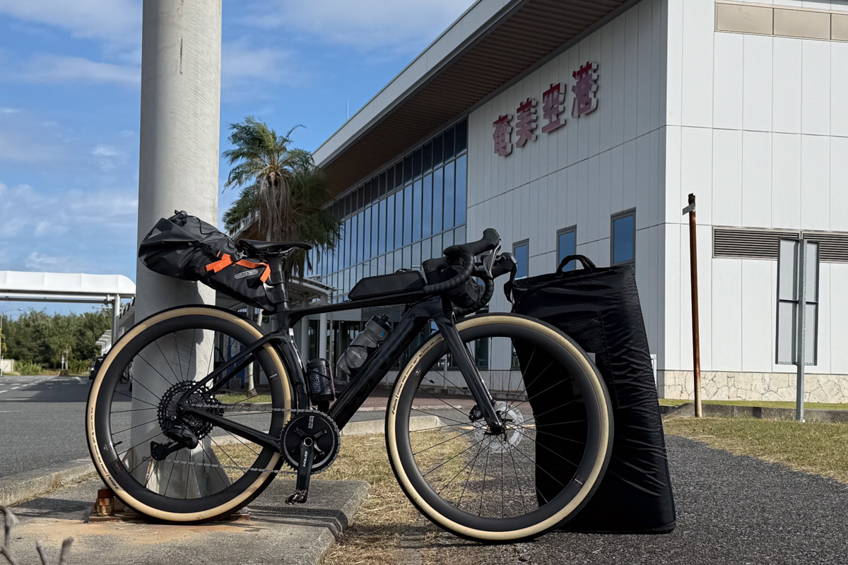 奄美空港に到着。輪行バッグは最終日に泊まる宿で預かってもらう