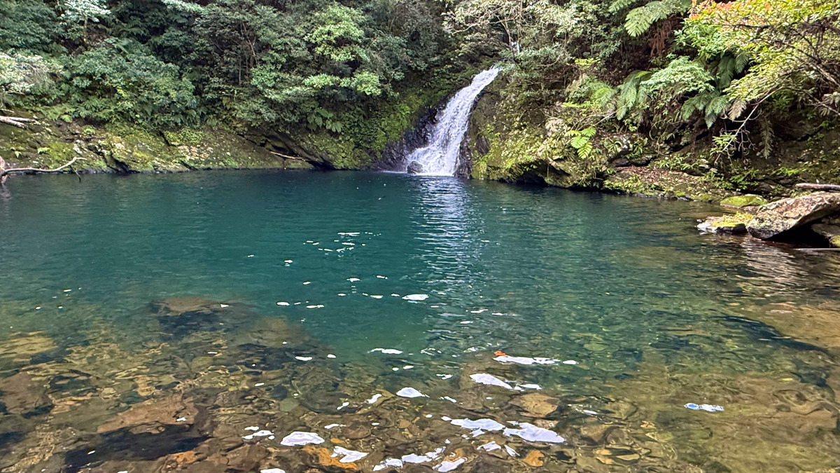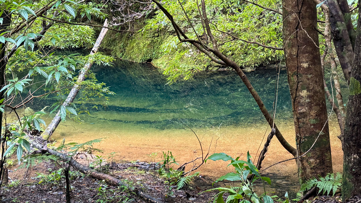 深い淵に透明度の高い水をたたえたマテリアの滝の美しさは、森のエッセンスが凝縮したようだった。一見おどろおどろしいイメージのある奄美のジャングルだが、中に入っていけばその美しさ、清らかさに感動する。