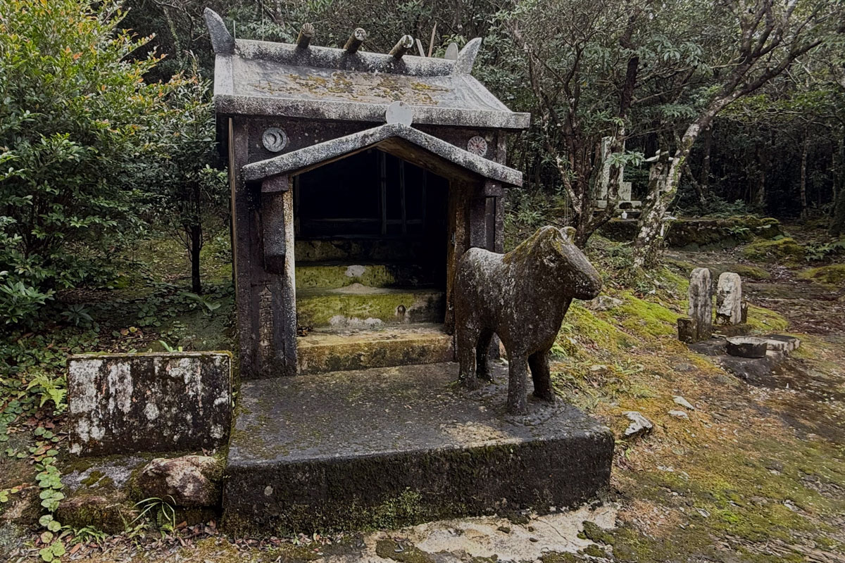 湯湾岳山頂展望台付近の素朴な石造りの神社