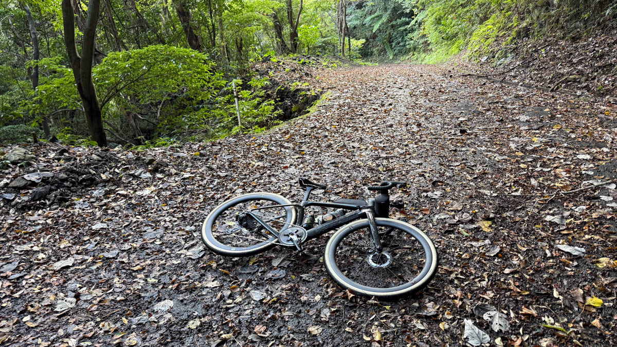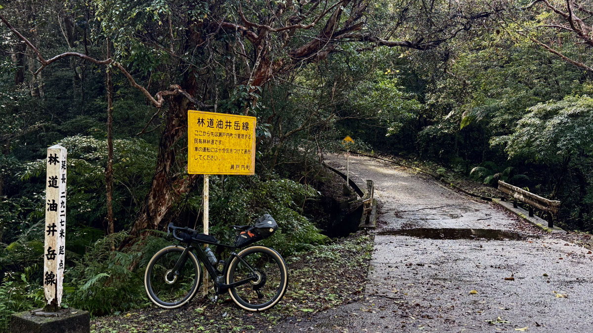 その目論見は大正解で、奄美諸島の林道は大半は舗装されているが、人の手が入らなかったため路面が荒れ、ひび割れや落ち葉や苔などで綺麗とは言い難い状態の道も多い。また台風や大雨が多く、グラベルの林道は荒れて廃道へと向かっている。そんな道を走ってきた。