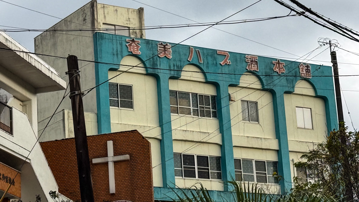 名瀬の奄美ハブ酒本舗ビル。これまた味わい深い