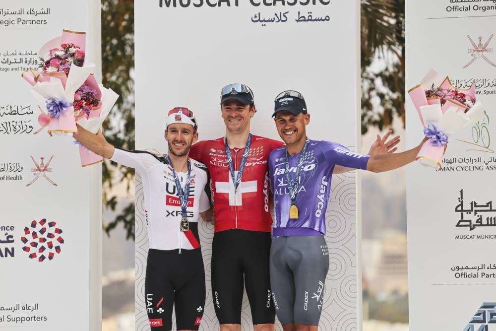 今年プロレースに昇格した第4回マスカット・クラシック。終盤にジェイコ・アルウラーが数的優位を作り出し、マウロ・シュミット(スイス)がアダム・イェーツ(イギリス、UAEチームエミレーツXRG)をスプリントで退けた。