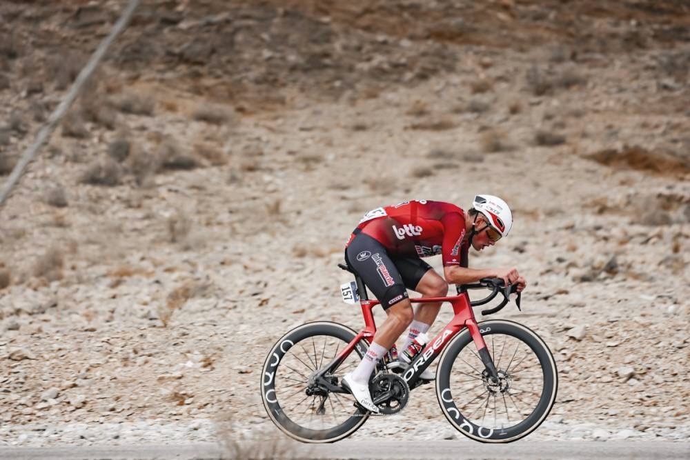 オマーンの首都マスカットを巡る176.2kmコースは平坦基調であるものの、後半は勾配のある6つの丘を越えるレイアウト。昨年はパンチャーとクライマーに絞られた大集団によるスプリントを制し、プロ初勝利を飾ったリック・プルイマース(オランダ、チューダープロサイクリング)を先頭にレースはスタート。バティスト・ヴェストロフール(フランス、ロット・アンテルマルシェ)が単独逃げを決めた。