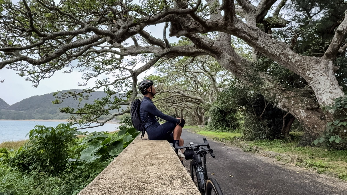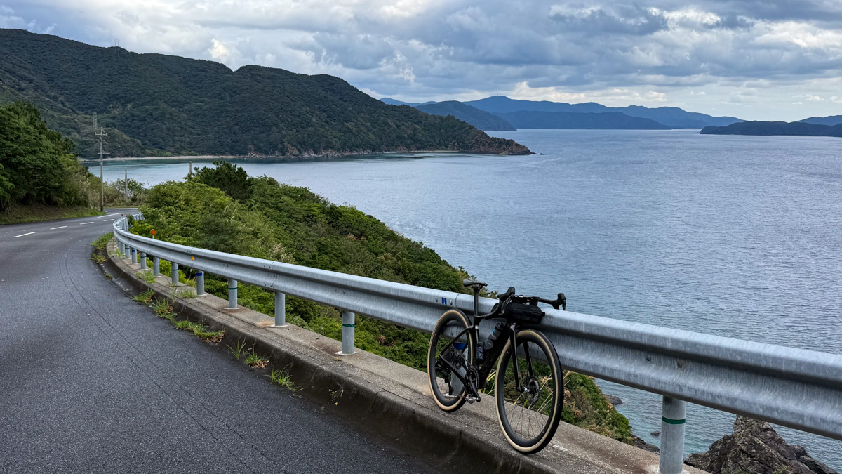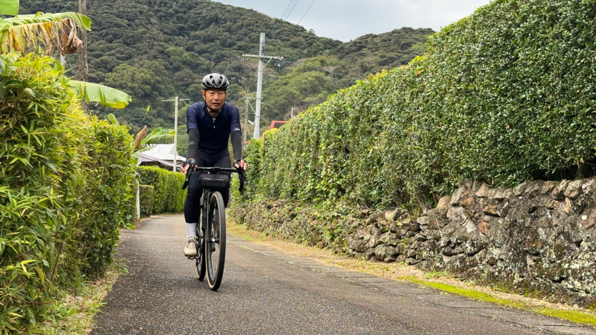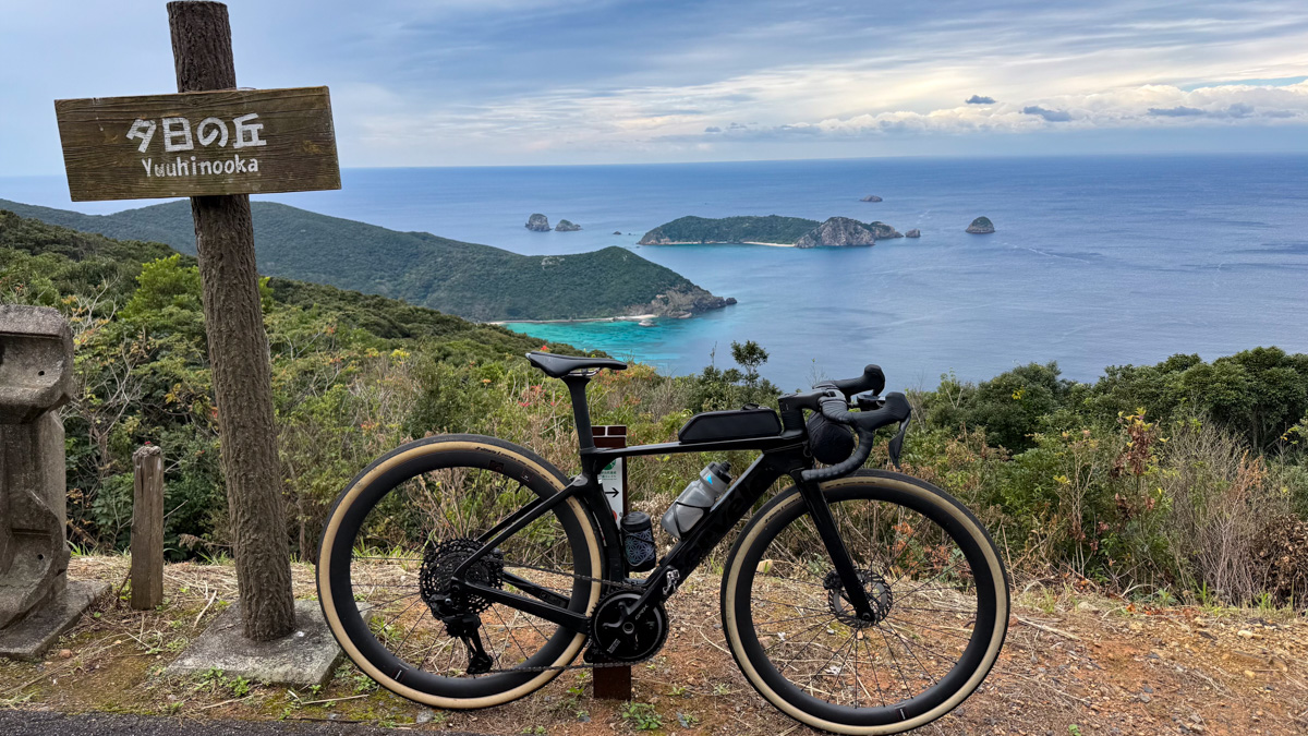 今回グラベルタイヤ未満の太いロードタイヤを使ってのライドだったが、それは加計呂麻島にはベストチョイスで、路面の悪さをいなして快適に走ることができた。バイクのギア比もロー48✕52Tのワイドギアで、急坂の登りに十分対応できた。