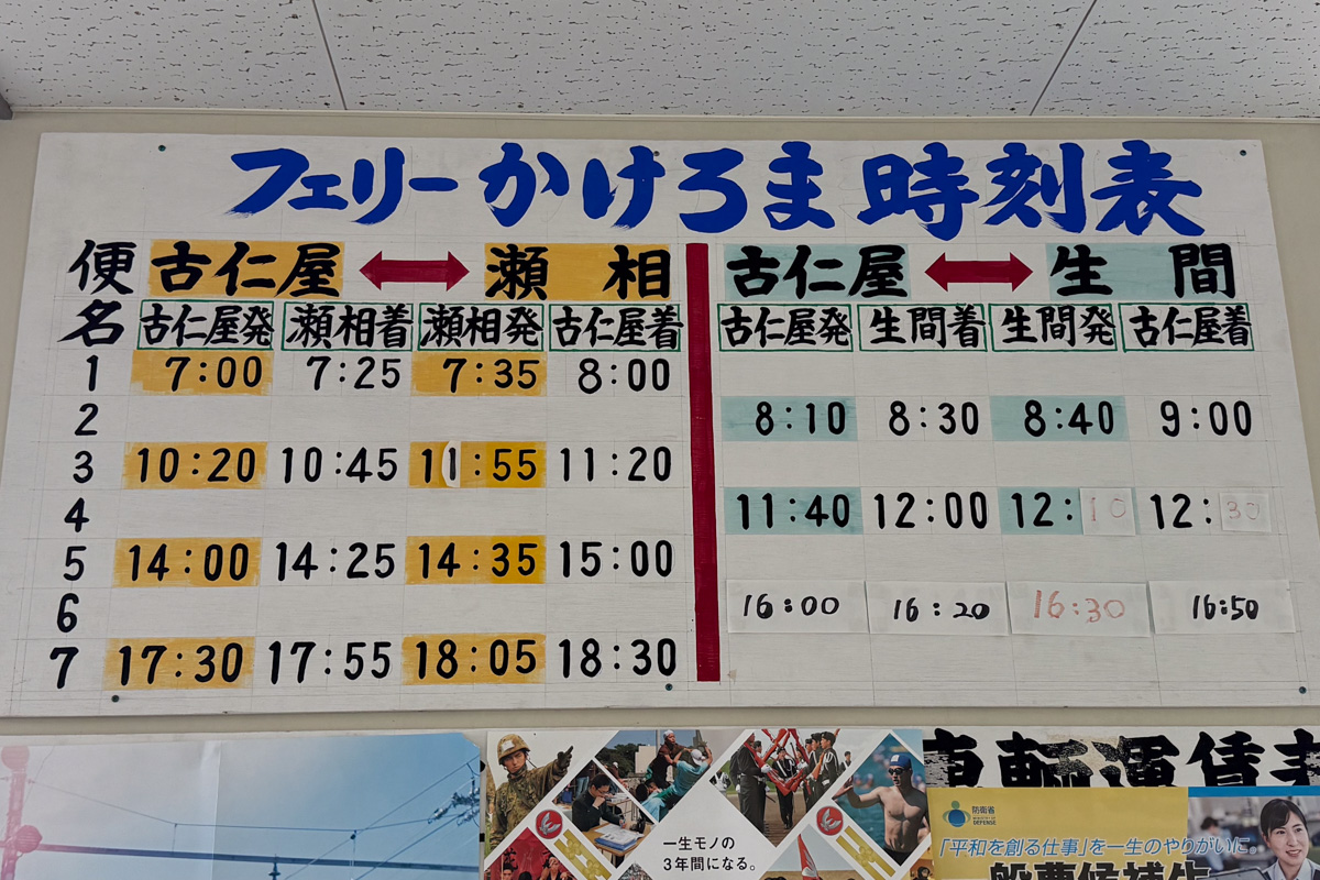 フェリーかけろま時刻表。年の瀬は間引き運航されていた