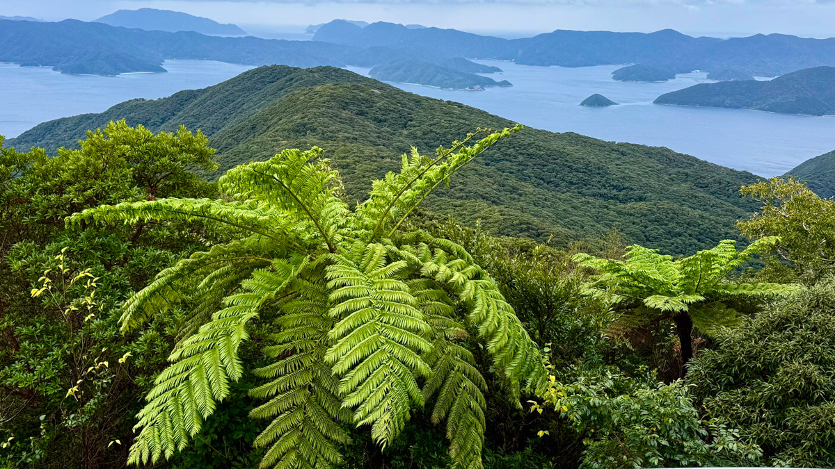 海が見えてきた。島南部の地形の険しさが分かる photo:Makoto AYANO