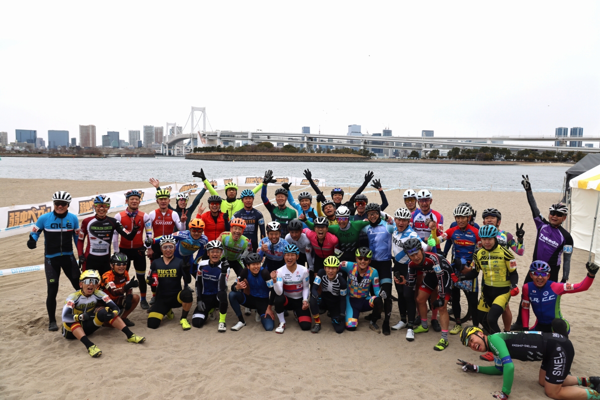 レースが終わった後、選手たちはノーサイド。参加者同士でレースを振り返り、話している様子を見ていると達成感に満ち溢れた表情をしていた。そして、シクロクロス東京らしくレインボーブリッジを背景に、マスターズでは恒例の集合写真を一枚!みなさん、お疲れ様でした!