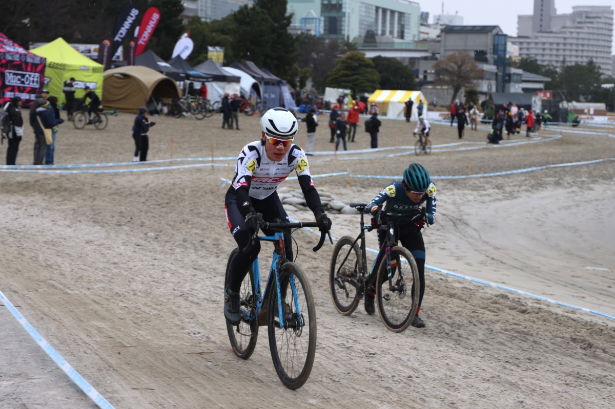 男女のジュニアカテゴリーのレースは、シクロクロス世界選手権に出場した三上将醐(ATHLETUNE CORAGGIO KAWANISHI)と小林碧(AX cyclocross team)がそれぞれ圧巻の強さを見せ勝利した。