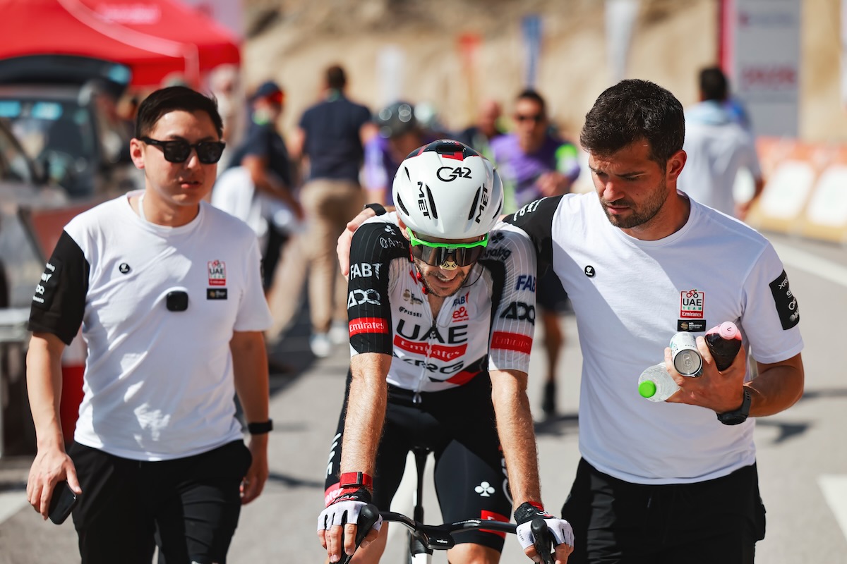 ヨハン・プリース=パイタースン(デンマーク、アルペシン・プレミアテック)を含む5名が逃げグループを作ったものの、この日の主役はもちろんメイン集団のクライマー勢。タイム差を最大2分半で固定し、ジャベル・アル・アフダルの序盤にバラバラになった逃げグループは一人、また一人と脱落。残り3km看板を過ぎ、イェーツ自ら高速牽引する精鋭グループが最後の一人を飲み込んだ。