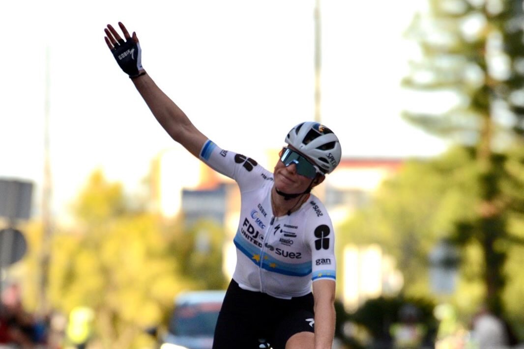 昨年と同じコース、同じ地点からのアタックを決め、2年連続の初日勝利、そしてシーズン初戦で勝ったフォレリング。2025年シーズンはツール・ド・フランス・ファムで2年連続総合優勝を逃し、ロード世界選手権でも7位。それでも10月のヨーロッパ選手権のロード王者に輝き、白地のヨーロッパ王者ジャージを着ての初勝利となった。